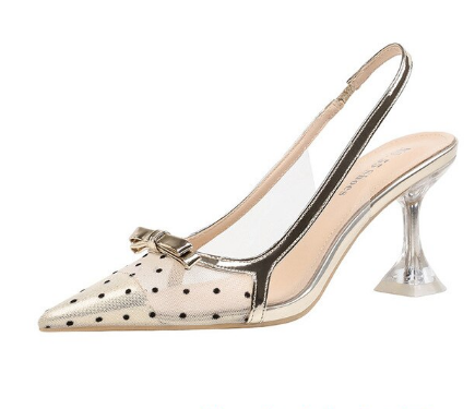Gold shoes for women: SHINY POINTED TOE HIGH HEEL SHOES