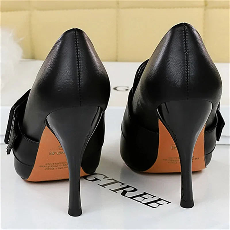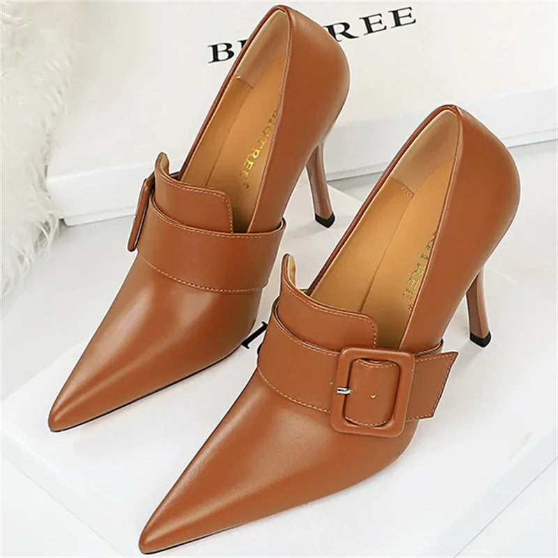 Elevate your look with these 10cm High Heel Pumps featuring a unique belt buckle design and eye-catching silhouette. Perfect for weddings, the office, or special events, these luxury pumps blend sophistication with a touch of the unexpected.