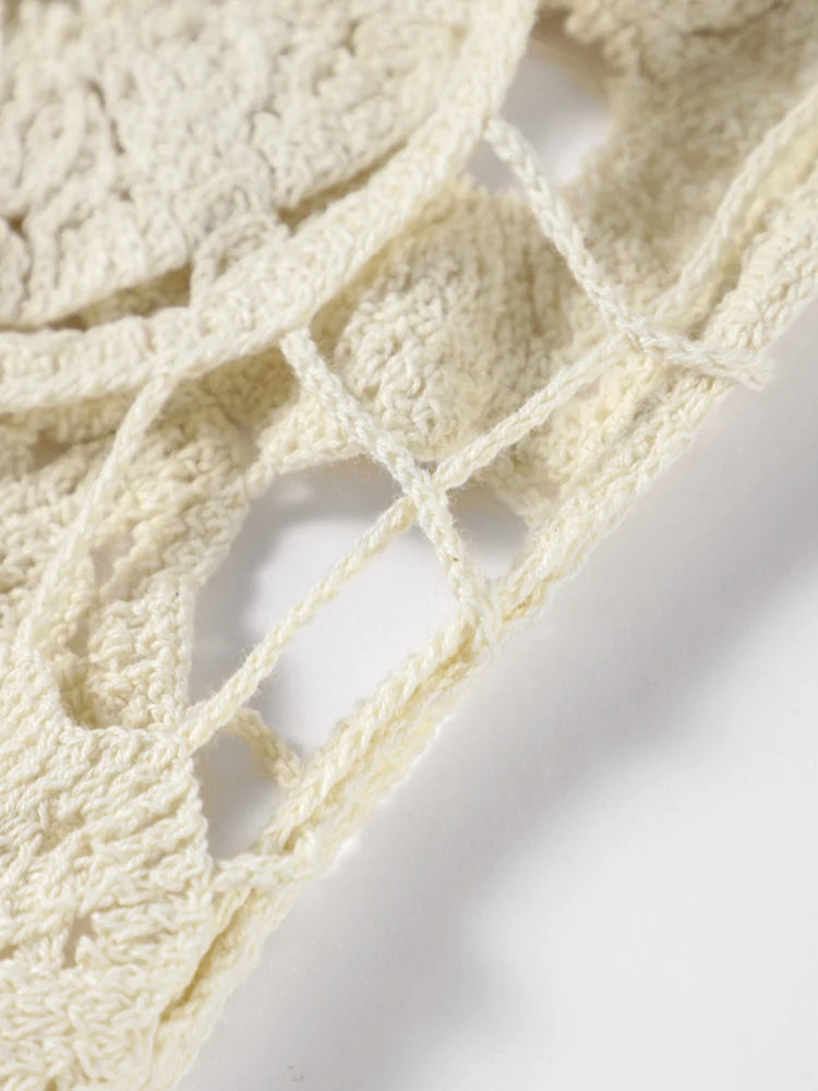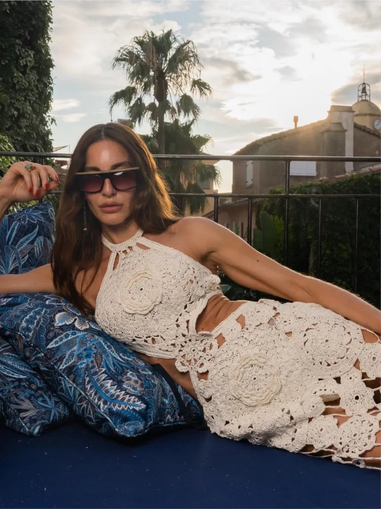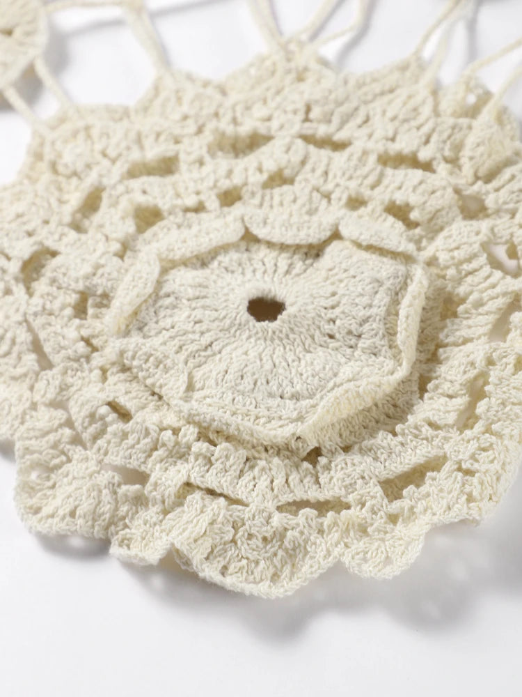 Elegant Fun Wear: This crocheted floral white dress for women features with halter neck, flowers detail, which makes you look wonderful, carefree and fun. Premium quality crotchet dress.