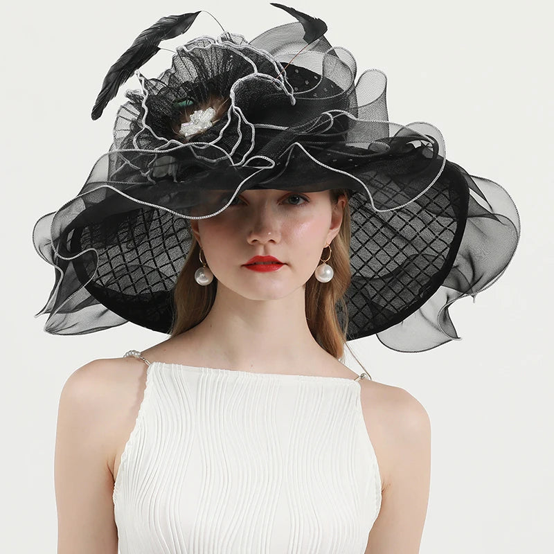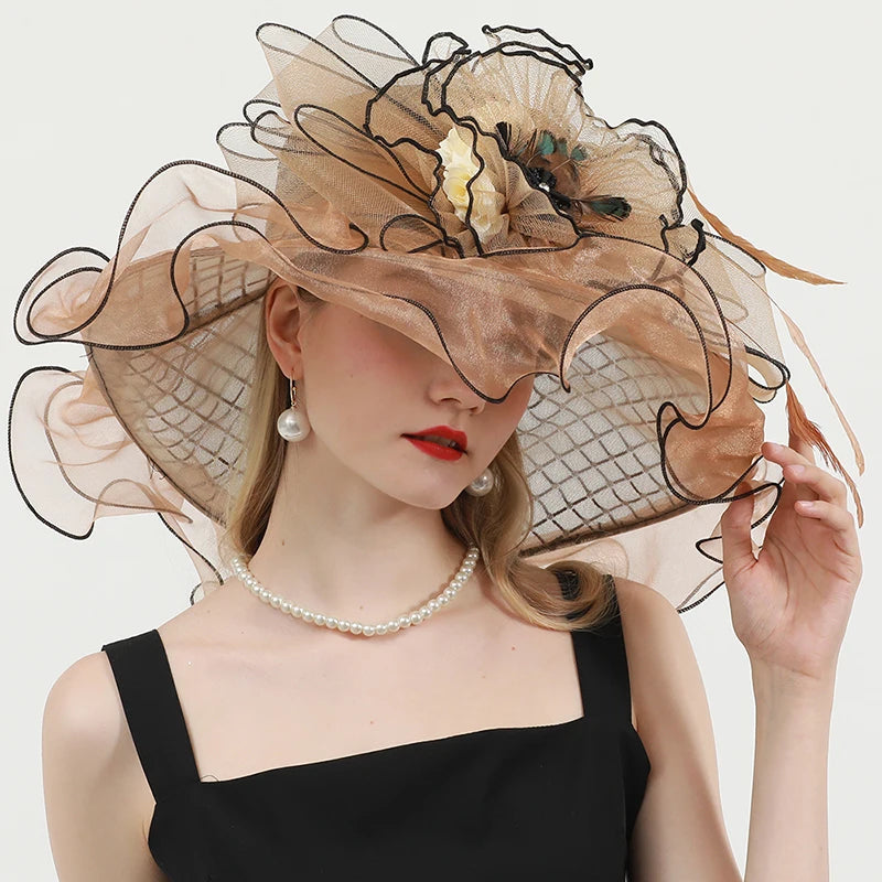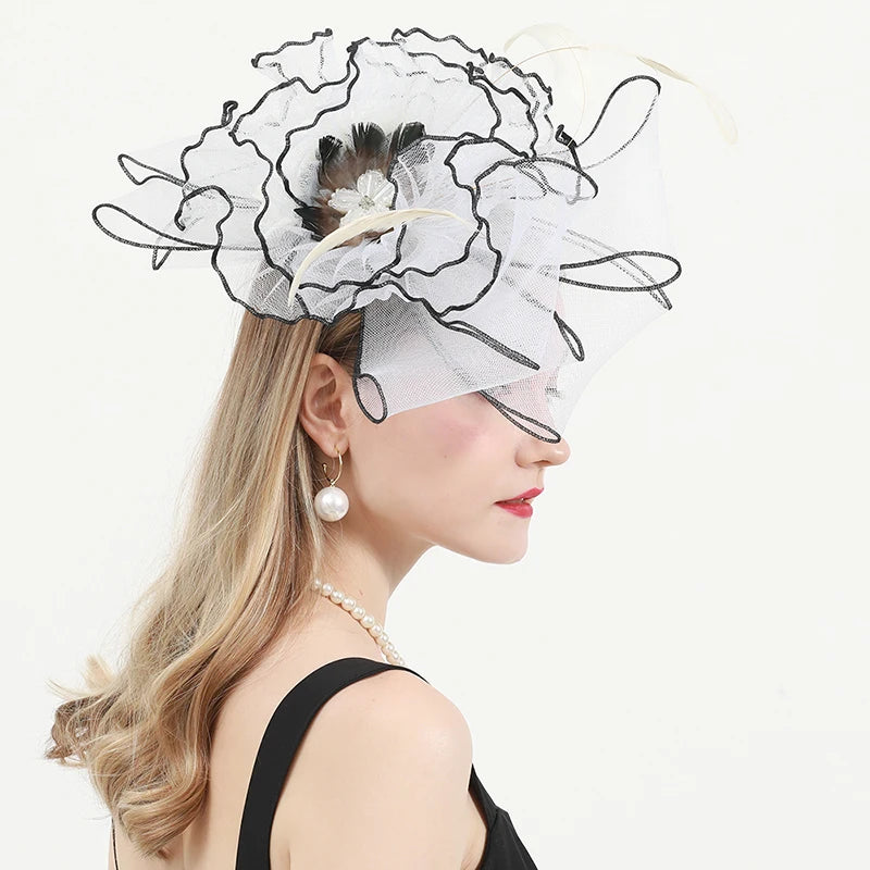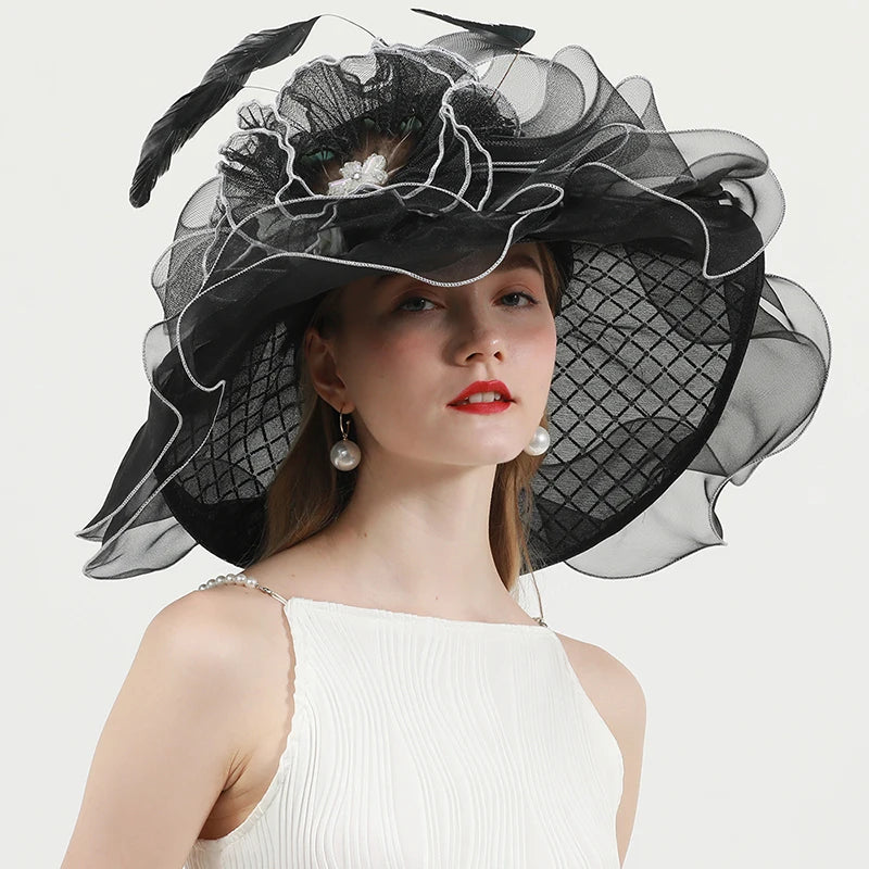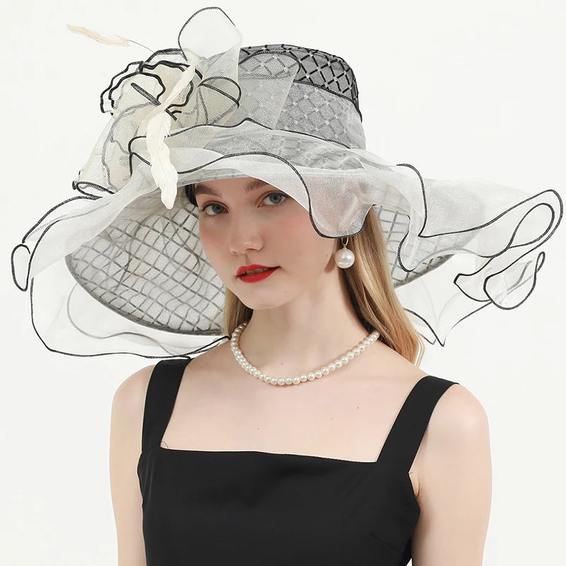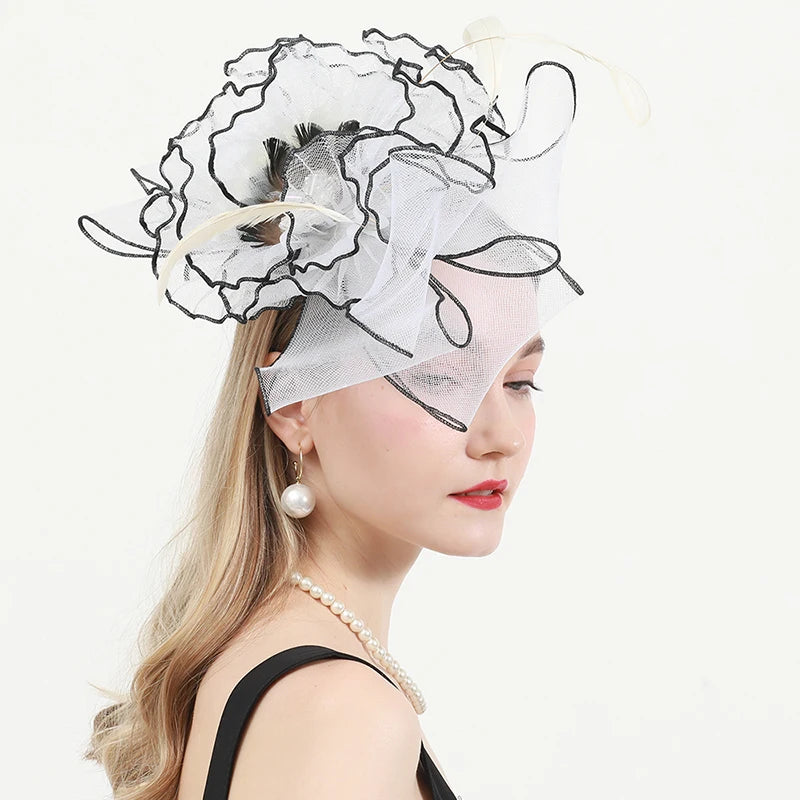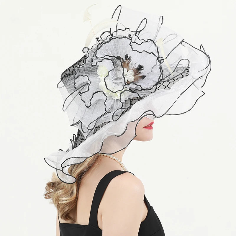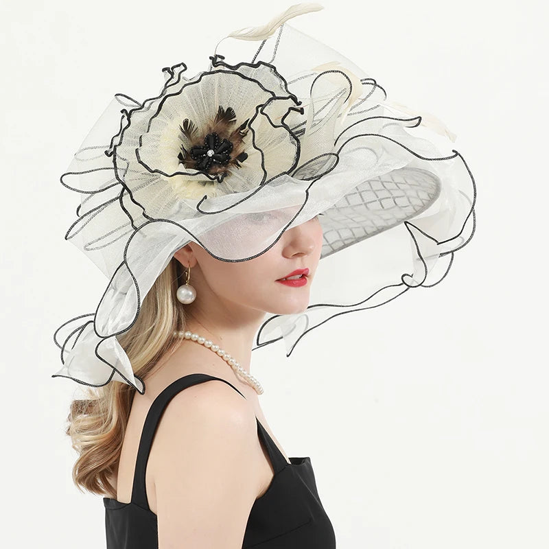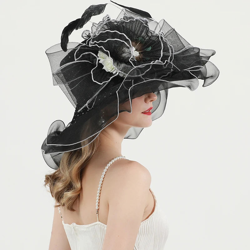 Chic & Protective Design: This flower hat features a stunning design with beautiful floral, feather, and mesh decorations that exude sophistication. With its translucent, sun-blocking material, this hat not only protects your skin from harmful UV rays but also adds a fashionable touch to your look, making it ideal for outdoor sports and activities.