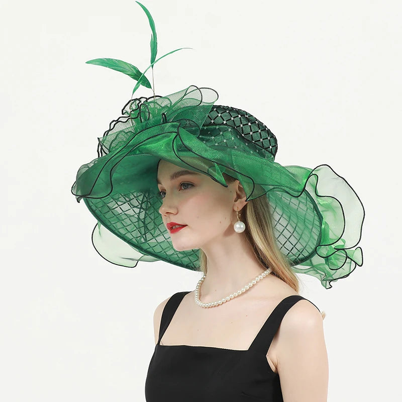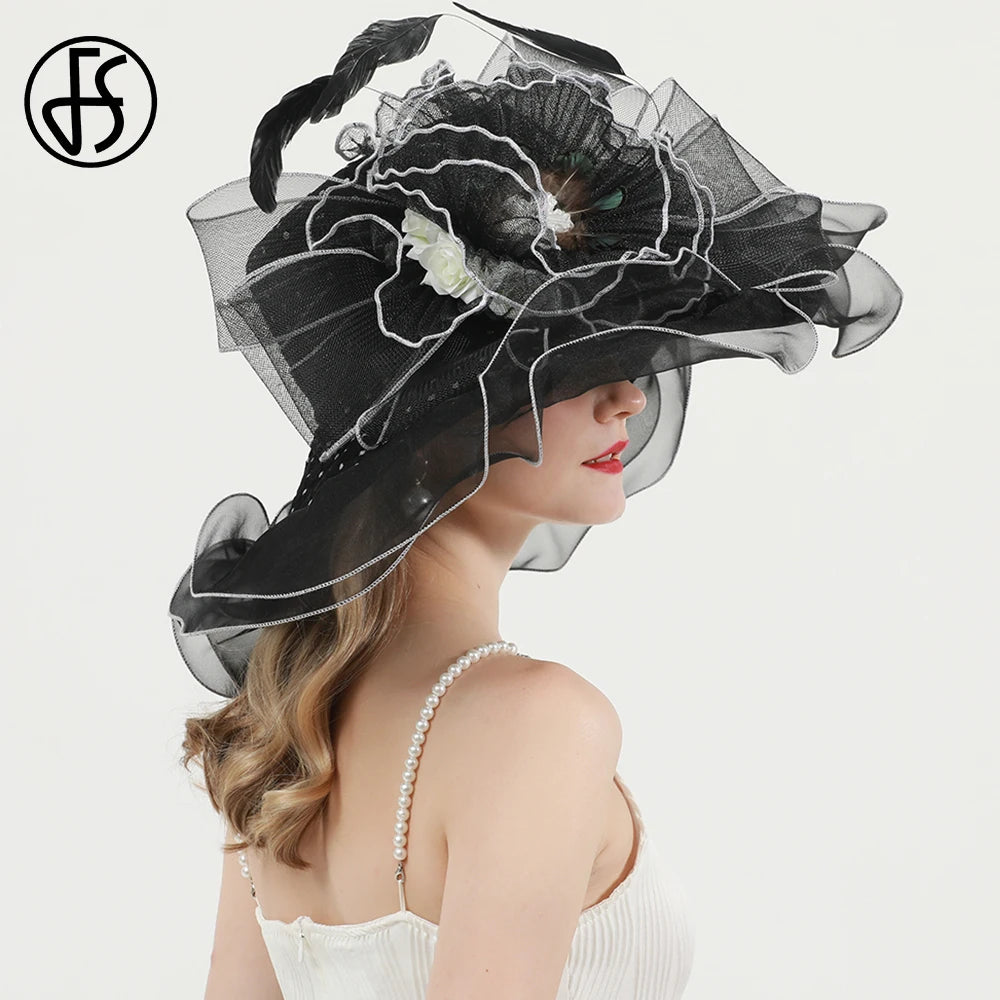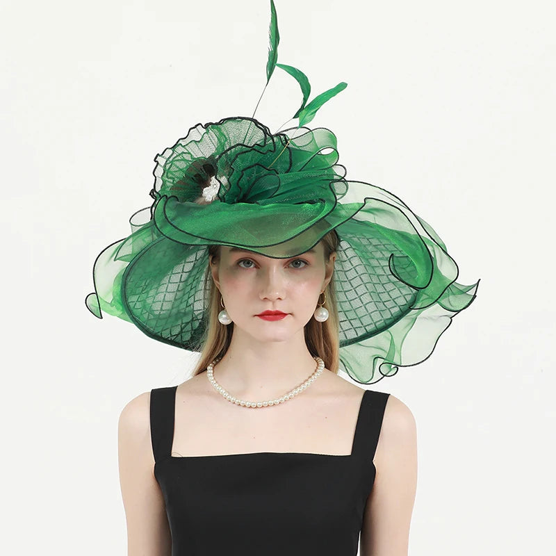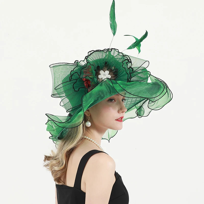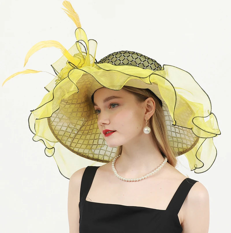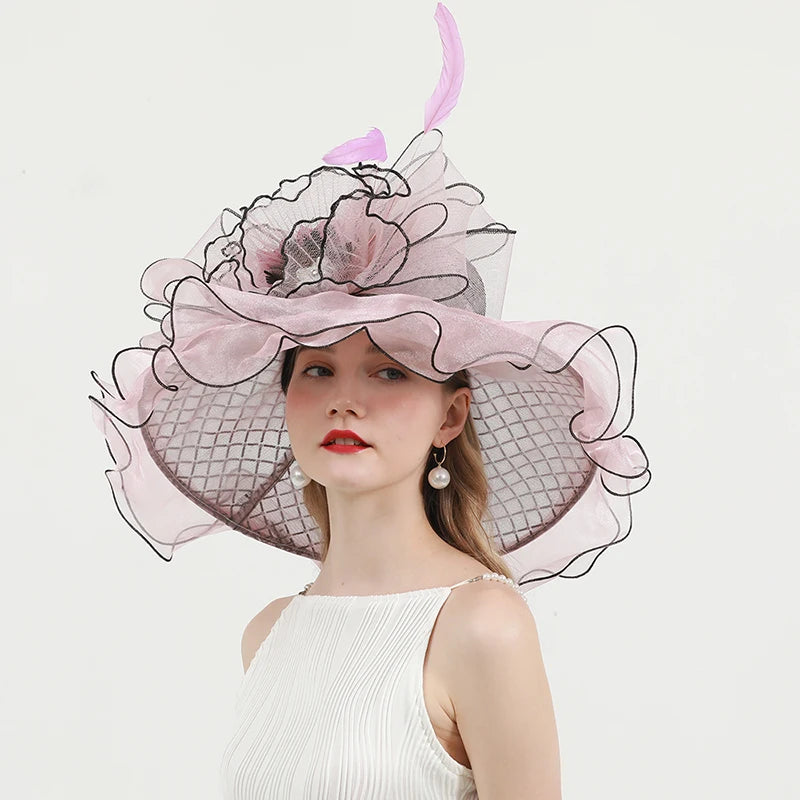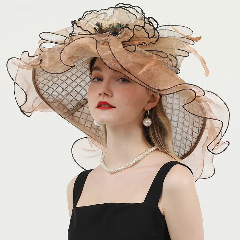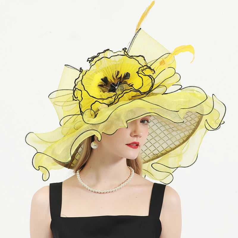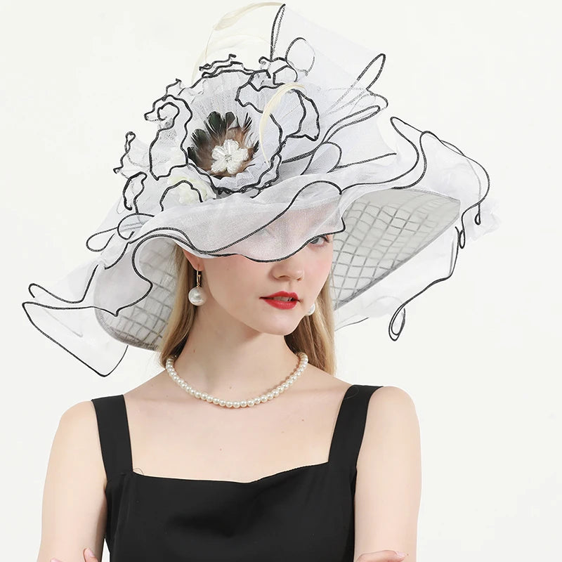 Chic & Protective Design: This flower hat features a stunning design with beautiful floral, feather, and mesh decorations that exude sophistication. With its translucent, sun-blocking material, this hat not only protects your skin from harmful UV rays but also adds a fashionable touch to your look, making it ideal for outdoor sports and activities.