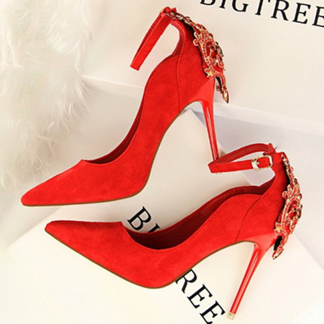 2021 Spring New Red Water Drill Shallow Mouth Women High Heels Sexy Dress Shoes Wedding Shoes Bride Top Selling Party High Heels