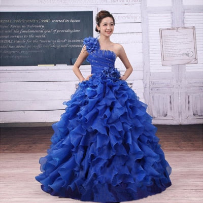 Ball gown dresses: Ruffle Rhinestone Evening Gown