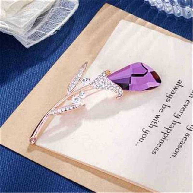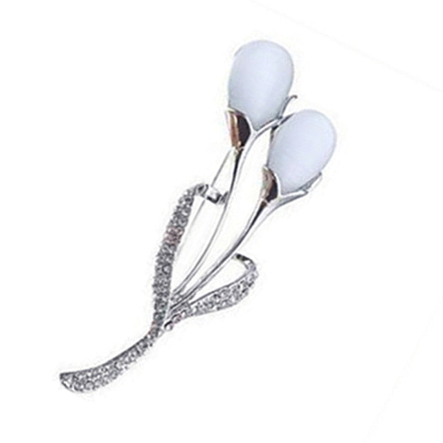 Design: The flower brooch pin is designed with faux opal petals, clear rhinestone stamen, and smooth alloy leaves.