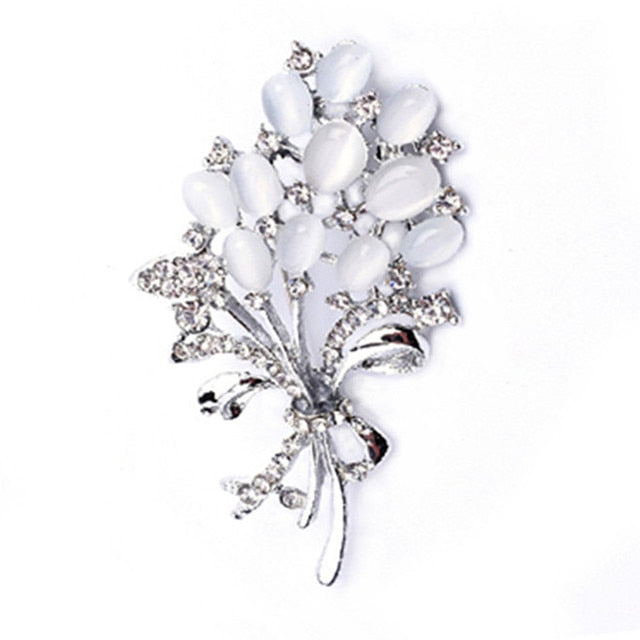 OPAL STONE FLOWER BROOCH PIN FOR WOMEN