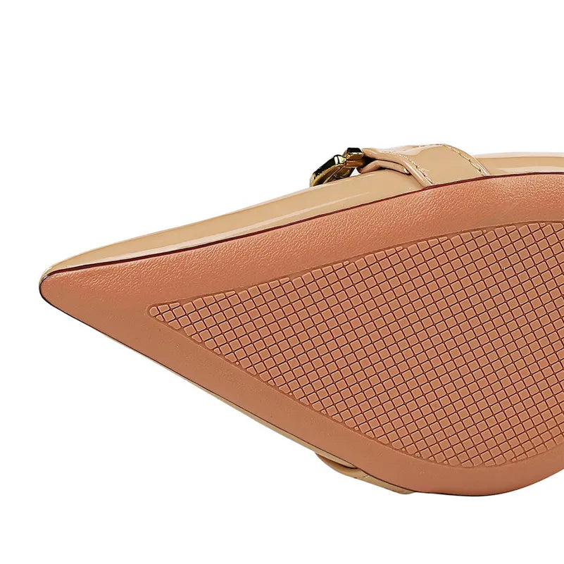 - Quality Material: Crafted from high-quality faux patent leather, these pumps feature a chic pointed toe and a fashionable studded strap for a modern touch.