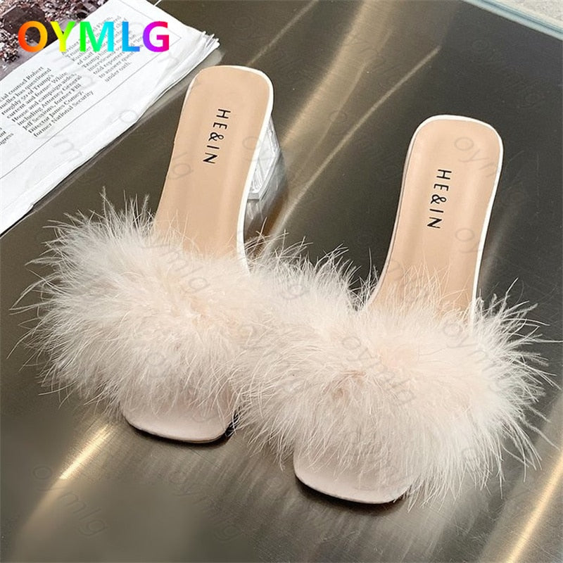 Women Slippers Summer 2021 New Fashion Stiletto Sandals Open Toe High Heel Zapatillas Mujer Casa Sapatos Femininos